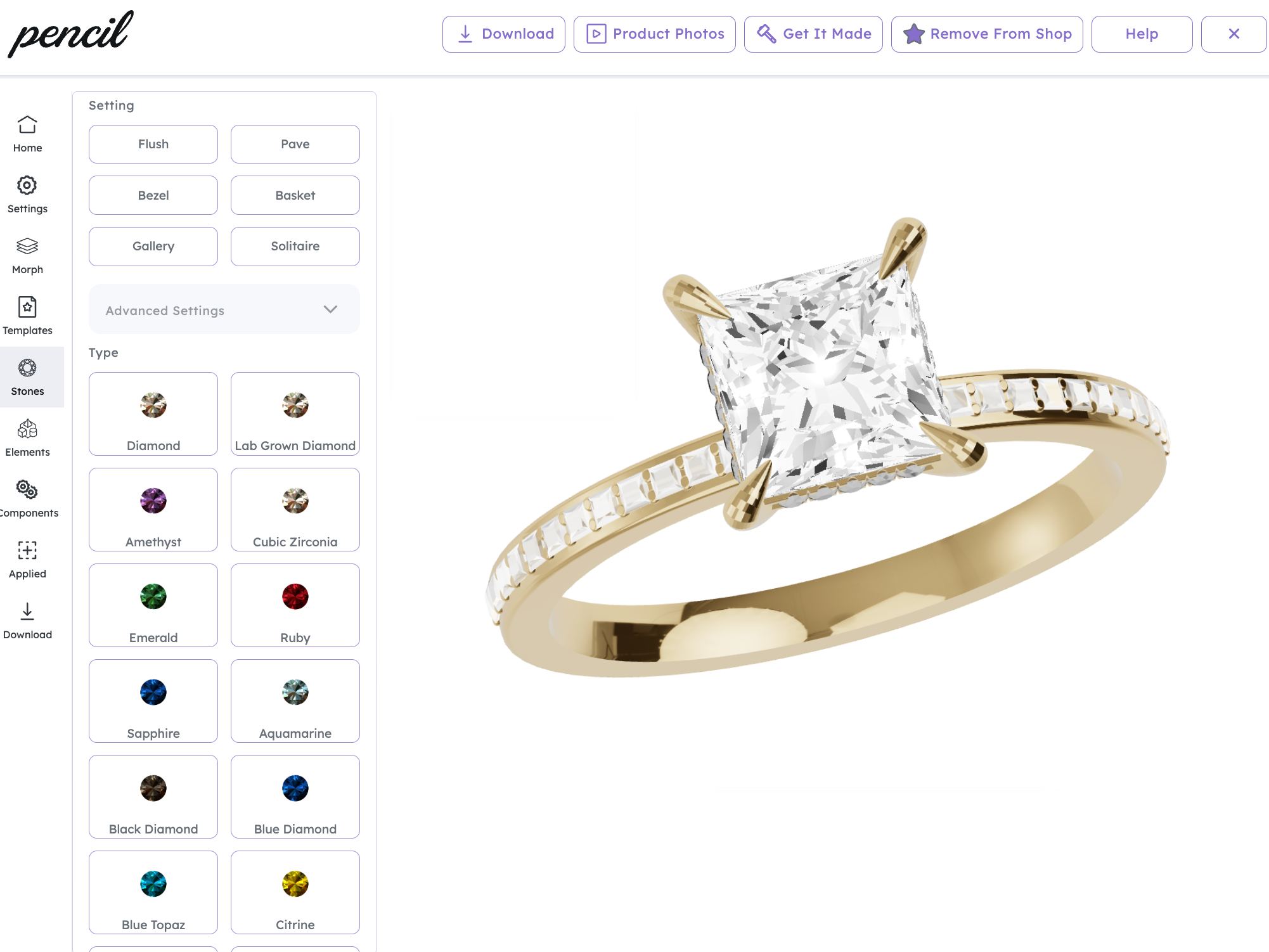 Customize advanced parameters like prong diameters and setting heights